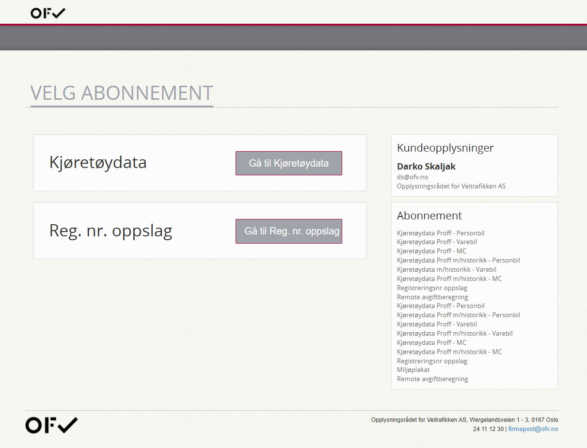 OFV Kjøretøydata er et abonnementsprodukt fra Opplysningsrådet for Veitrafikken AS og inneholder priser, tekniske data og utstyrsdata for alle nye personbiler, varebiler og motorsykler som er kommersielt markedsført i Norge.